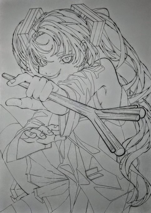 #イラスト 友達に自分の線画の色を ぬってもらいました! かっこいいです。。。