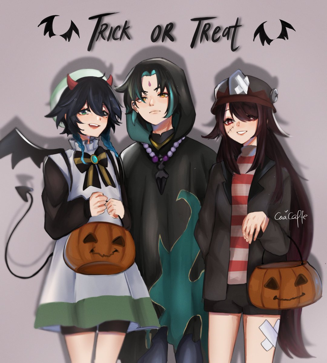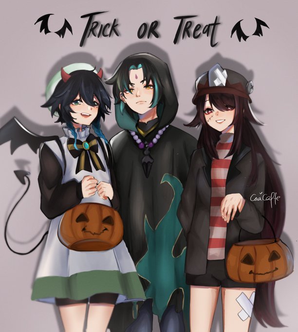 Trick? Or Treat!👻 #原神 #venti #xiao #HuTao #GenshinImpact #genshinimpactfanart