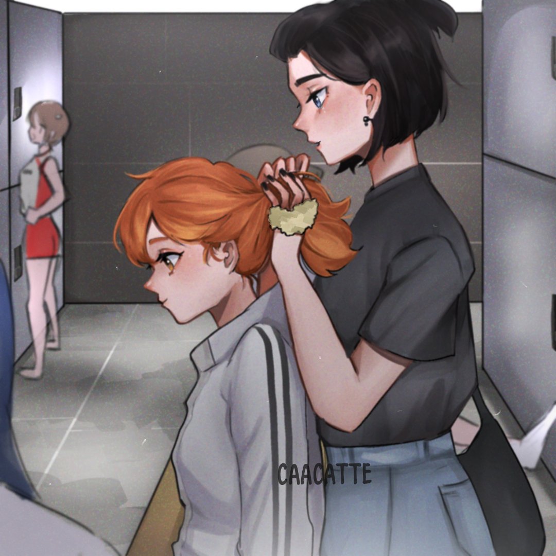Miwa fixing natsu's hair bfore her tournament #haikyuu