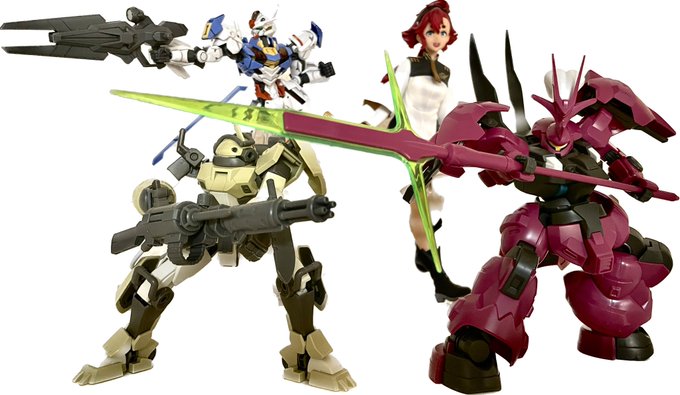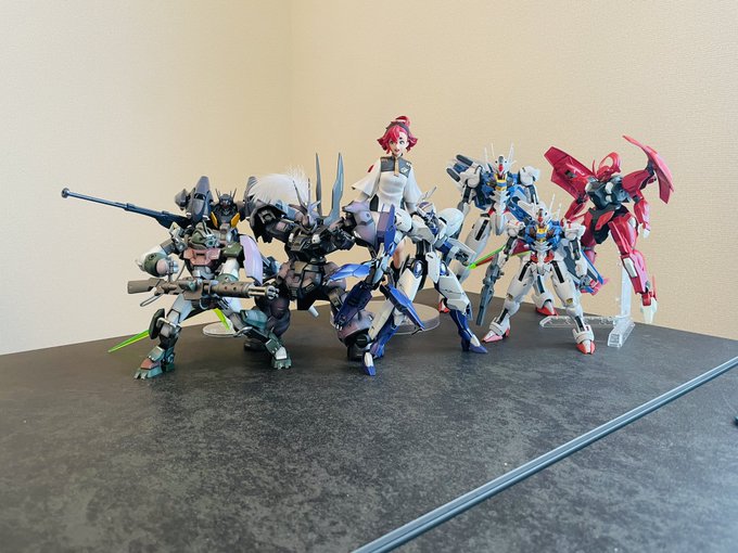 #ガンプラ #ガンプラの画像貼るとRTされると聞いて #ガンダムエアリアル #エアリアルフルメカニクス ほんまに躍動感半端ない。稼働がえぐい。 HGを並べたけどこの躍動感はHGでは表現難しい😅