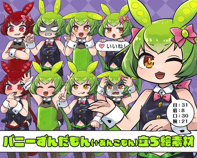 ずんだもん(とあんこもん)のバニー衣装の立ち絵素材ができました!!かわいいね。 よかったら使って欲しいのだ〜👯♀️ seiga.nicovideo.jp/seiga/im111165…