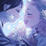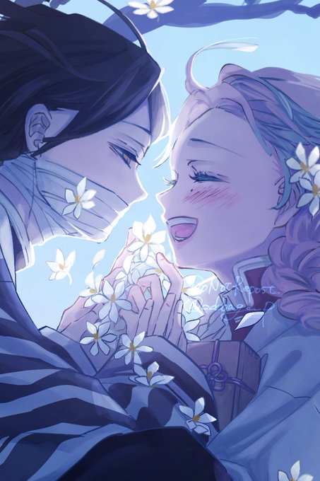 かぶくん達がお花を集めてきてくれていっぱい抱えてるところに風が吹いて、2人で抑えながらも花が舞うのが楽しくなってきちゃってるところを描きました✨ クチナシの花言葉 洗練/優雅/私は幸せです/喜びを運ぶ(transport of joy) 幸せな時間が少しでも多く長く続きますように。おめでとう💐 twitter.com/cabbage__p/sta…