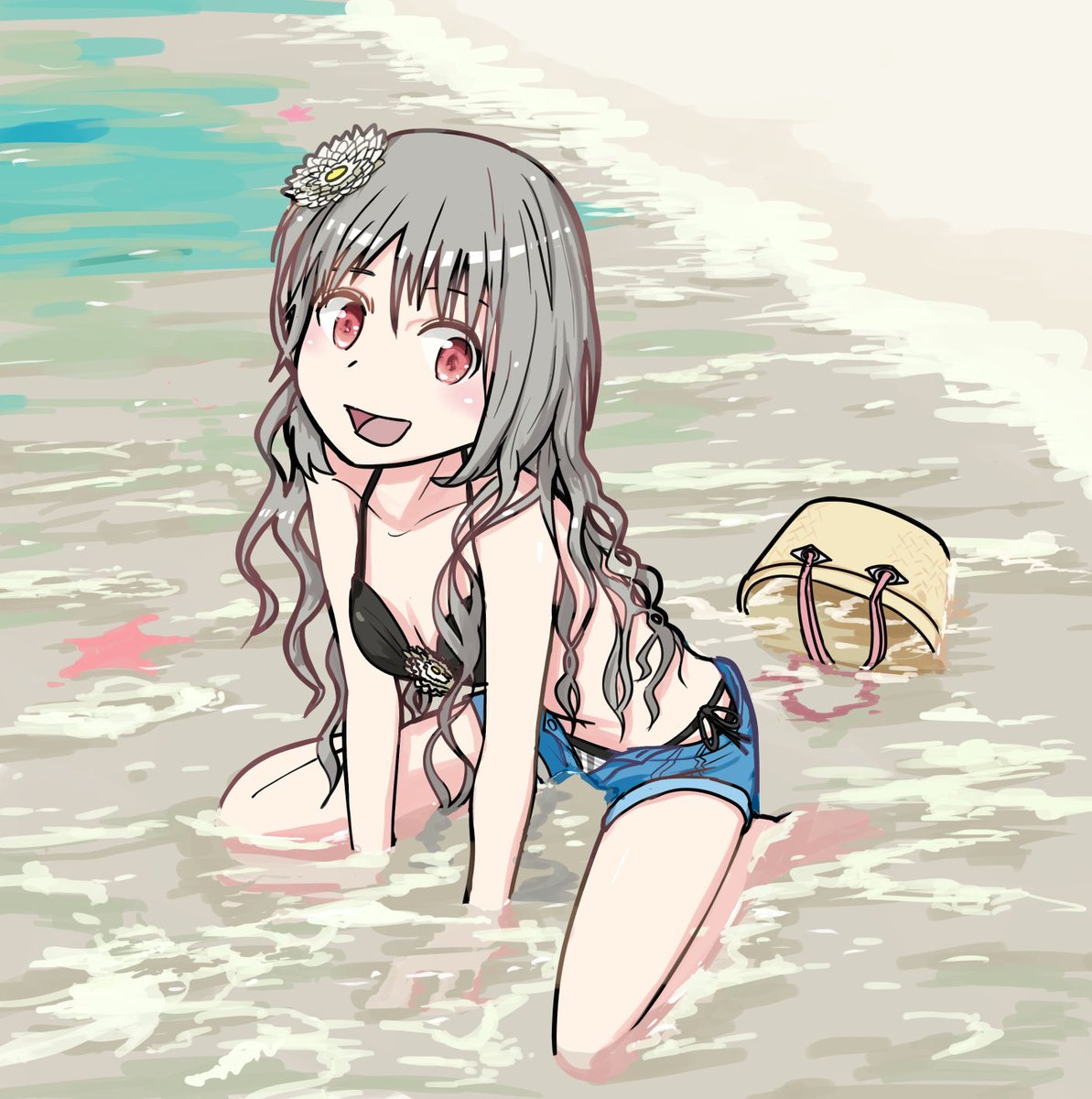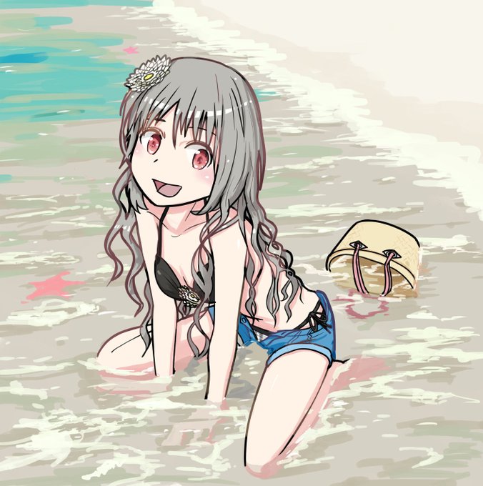 以前ハチクマ兄貴にリクエストされた気がする、 サマーリゾート2020フィルムのカノンさん。 波間の泡泡かくの楽しかった。 #駅メモファンアート #阿佐ヶ谷カノン