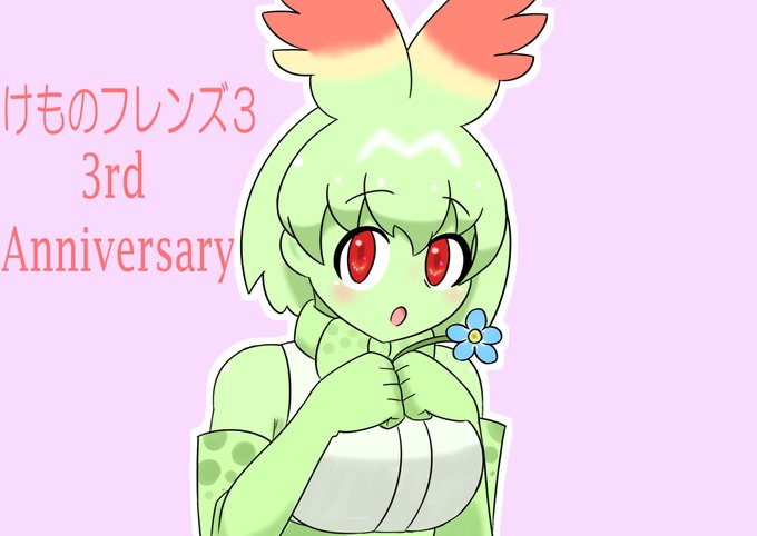 セーバルと勿忘草! もう少ししっかりと描きたいから記念絵はまた描く! けもフレ3三周年おめでとうございます🎉 #けものフレンズ3 #けもフレ3は3周年