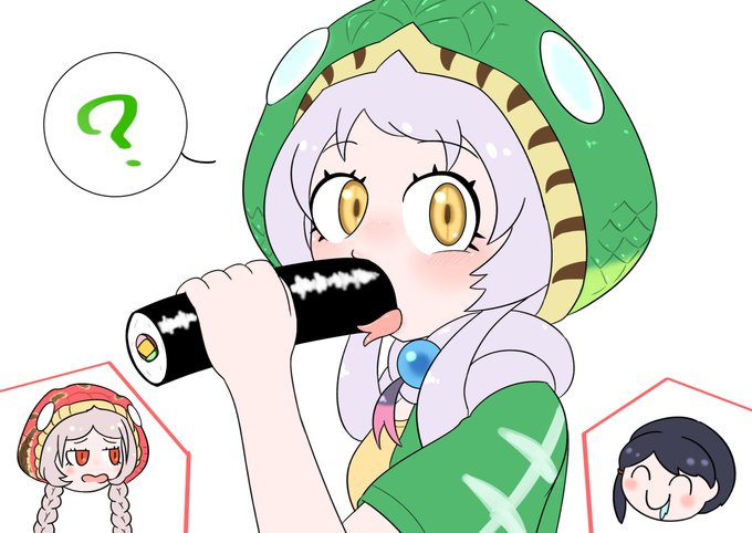 節分直前まで忘れてたので遅れちゃったけど簡単に ヘビの子は恵方巻を飲み込めるんだ…