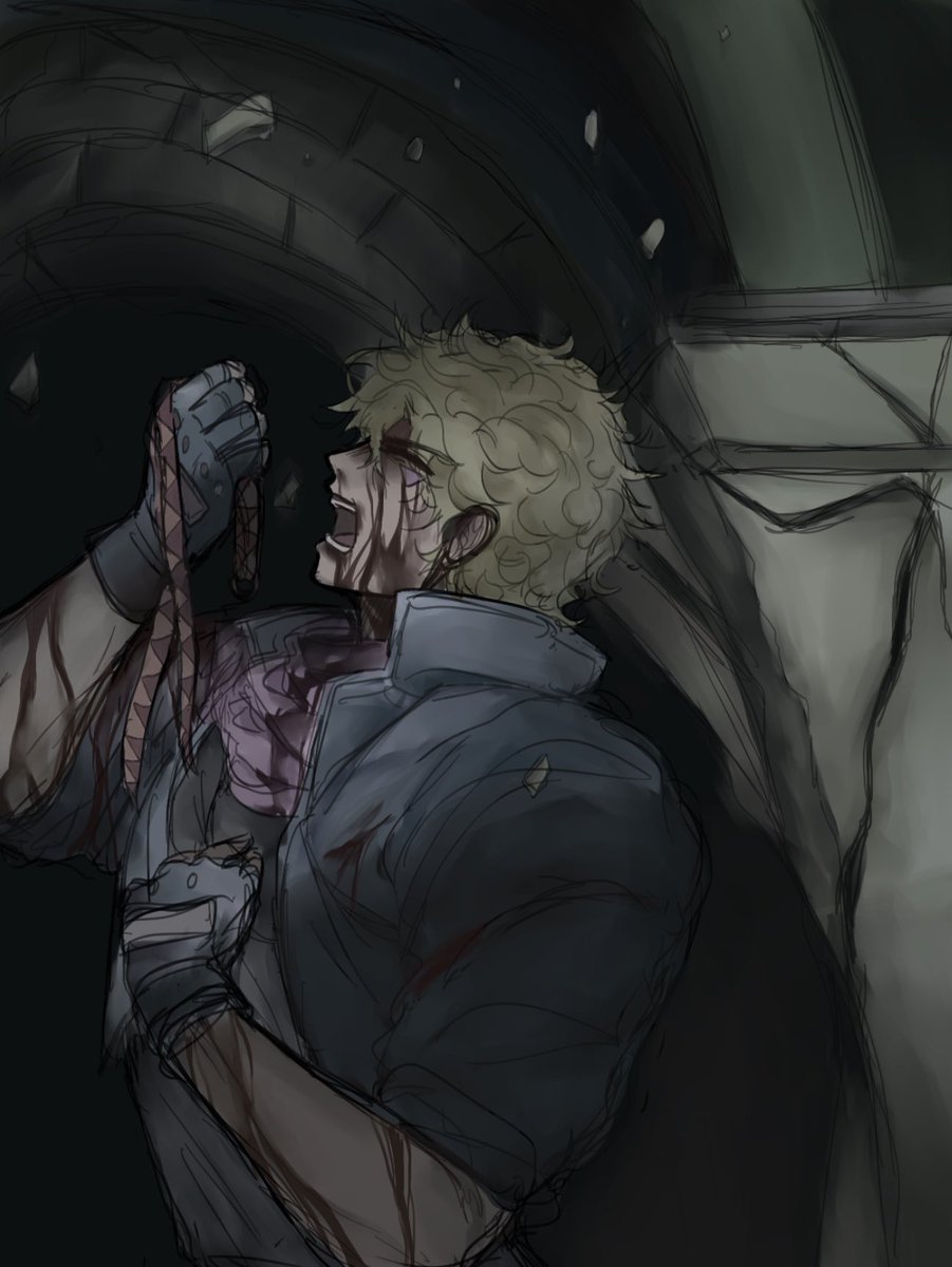 WARNING FAKE BLOOD im sorry for this drawing. i amlmost broke my hand coloring this but im not even that proud of it but... caesar my babygirl... #jjbafanart #jojofanart