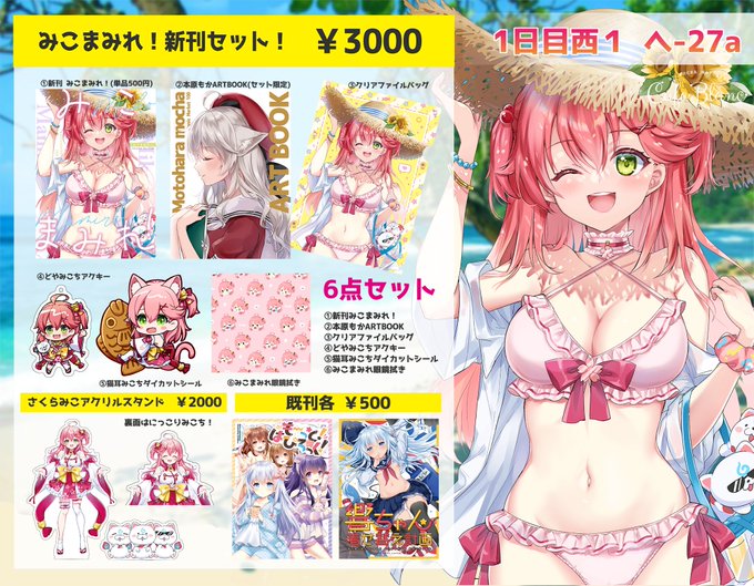 【お品書き】かふぇぶらん★のお品書きです~!さくらみこちゃんの新刊セット、どれもとっても可愛くできました🌸 13日西1へー27aにてお待ちしております✨ webカタログ→ webcatalog-free.circle.ms/Circle/16213539 #C100