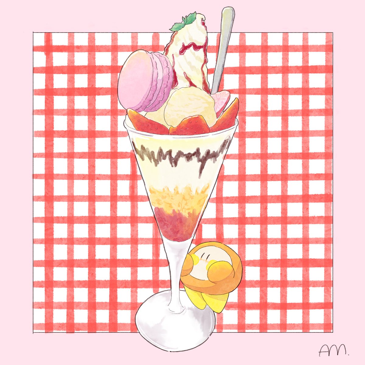写真トレスで練習 ワドちゃんと苺パフェ🍓🍨