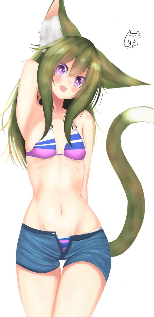 #オリジナル #イラスト #Dibujo スレンダーな猫耳女子の水着🐱