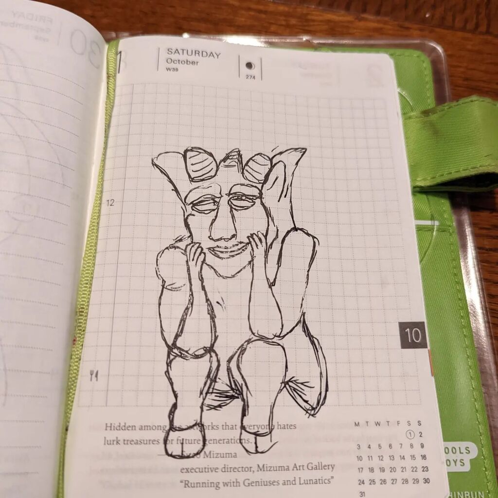 Inktober day 1 gargoyle. Tried my hand at drawing Garth from my doorstep. Needs a bit more work. Practice makes perfect #hobonichitecho #hobonichi #inktober #inktober2022 #gargoyle #sketch #doodle