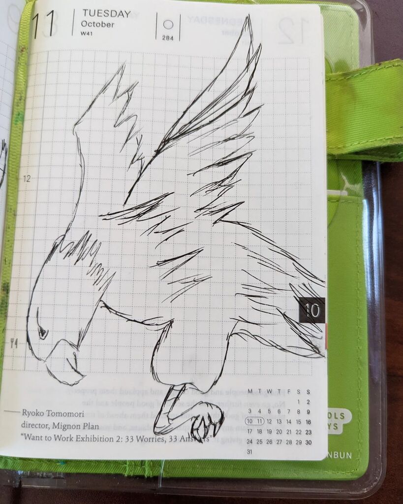Got the scales all wrong for today's quick sketch of an eagle. Ran out of room to do it right. Oh well it's in the book now... #hobonichitecho #hobonichi #inktober #inktober2022 #eagle #sketch #doodle #sotd