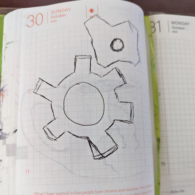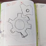 Prompt was gear. I'm crap at drawing symmetrical things by hand. I have programs to do this for me on a computer... Stupid gears. Horrible way to round out a month. One day left then Inktober will be in the books. #hobonichitecho #hobonichi #inktober #inktober2022 #gear #…