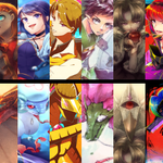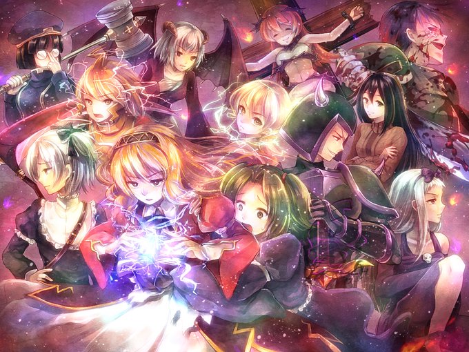 #今までで作画カロリーMAXの作品上げようぜ もう9年前になる絵だけどアレックスと最終戦争と9人の少女より こんな感じの集合絵を毎月2枚・半年11枚ペースで完成させてたくせに高3受験生真っ只中だった頃もありました(白目)