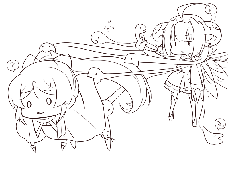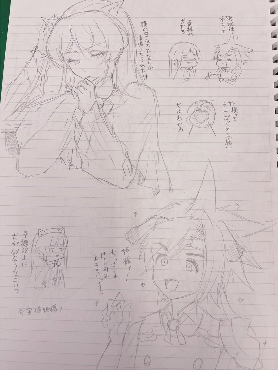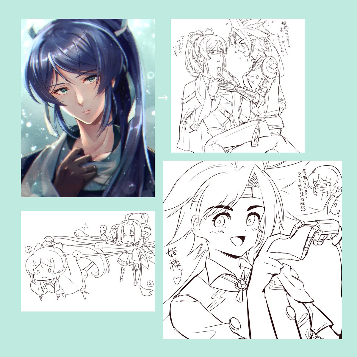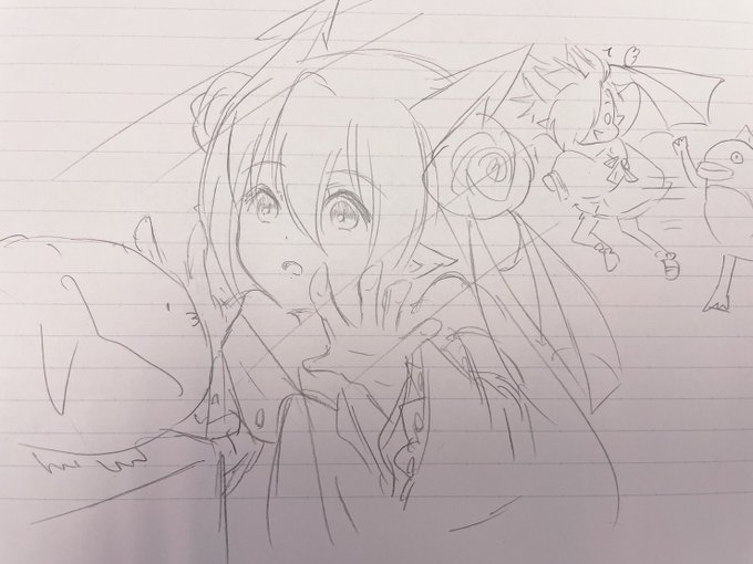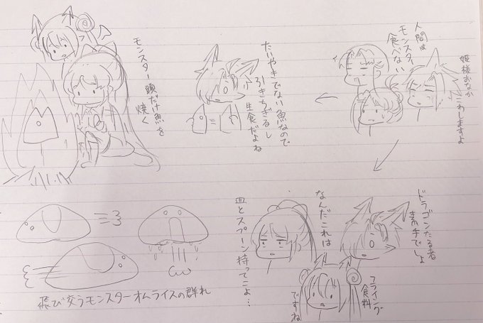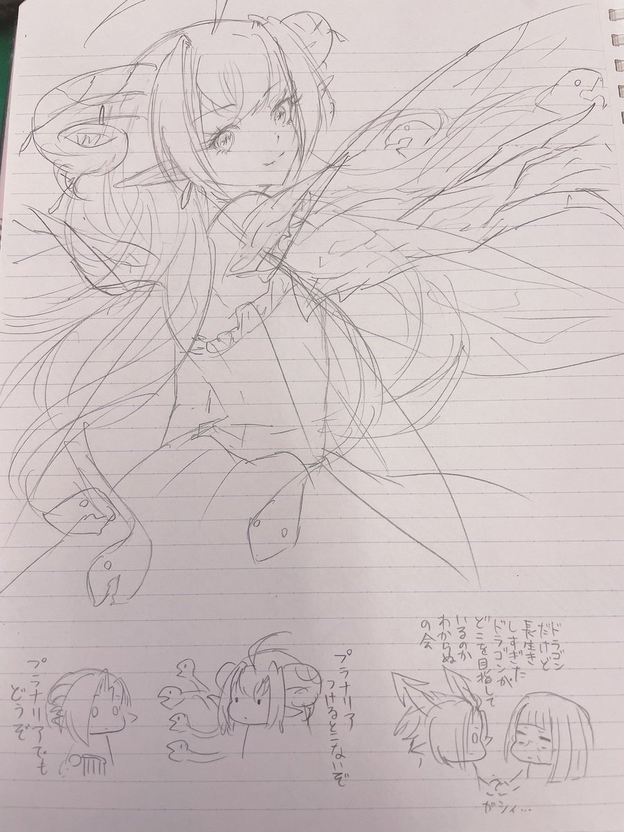 #今月描いた絵を晒そう 1枚目:マジメなやつ 2枚目:同キャラ率が高いらくがき詰め 3枚目:ちょっとけしからん寄りのらくがき 4枚目:おや? この敵デザは……?(本編作れ) 他まだ出せないドラゴンとかも描いてはいる
