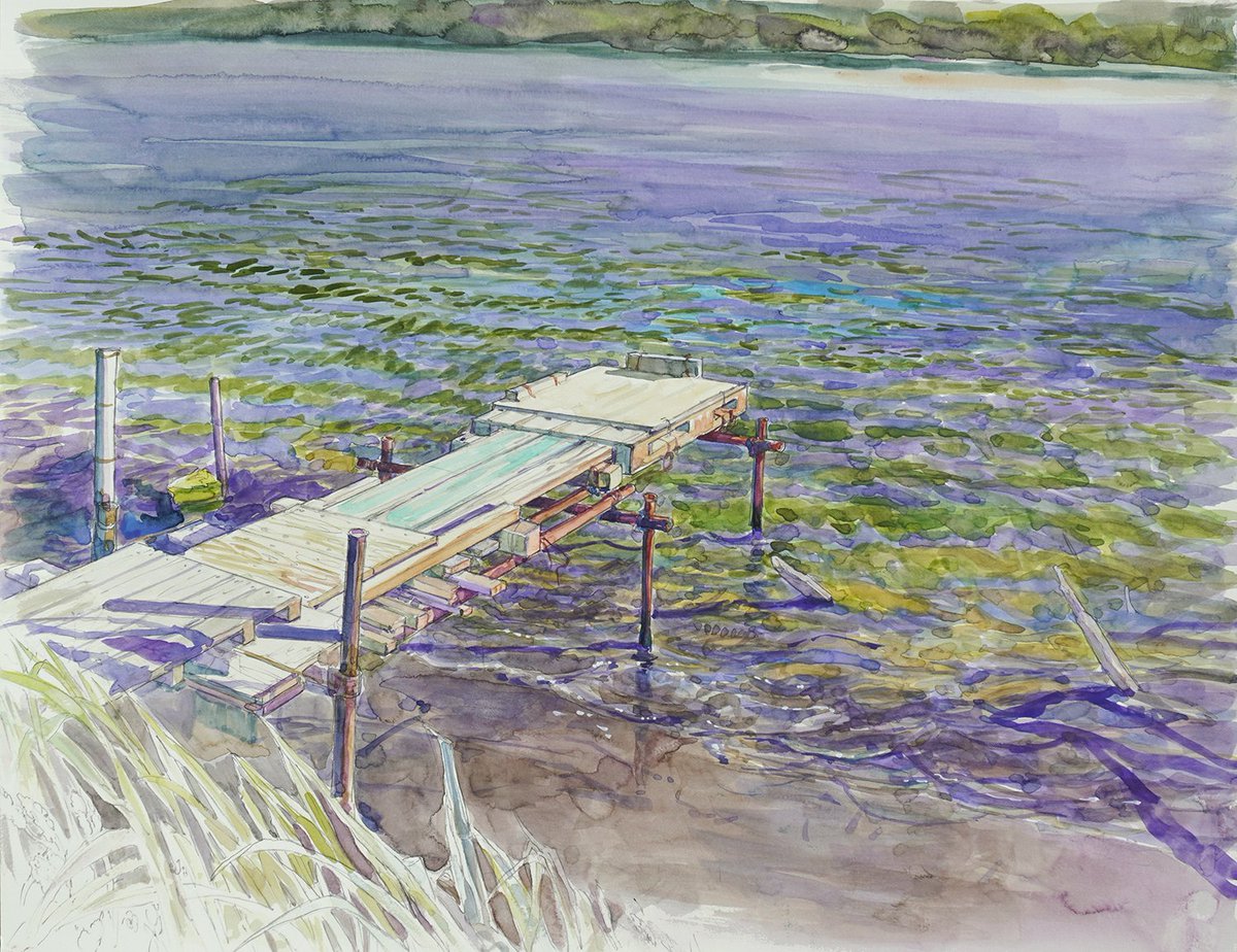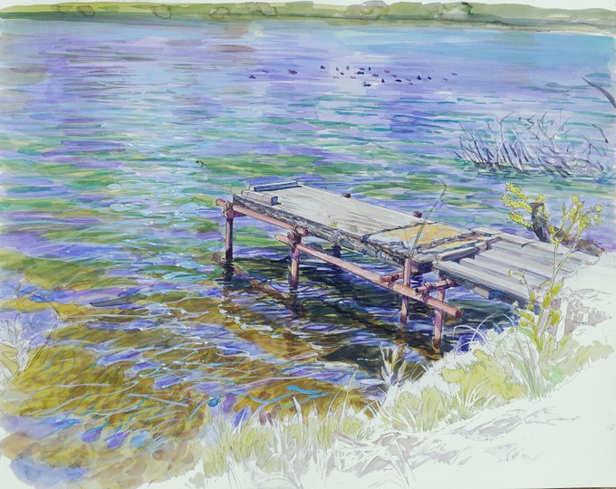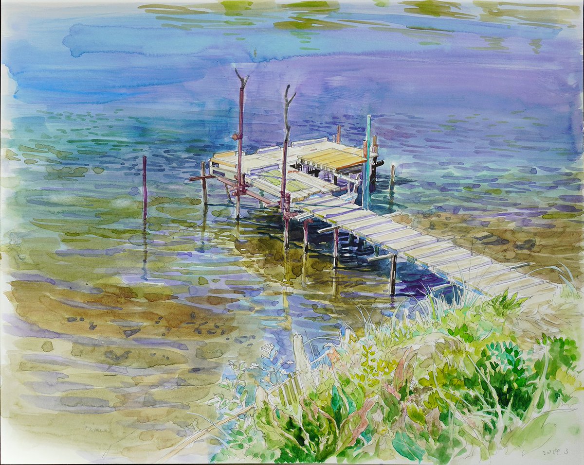 『釣り桟橋正午』『Pier』f6 水彩絵の具 #水彩画 #Watercolor #スケッチ #風景画