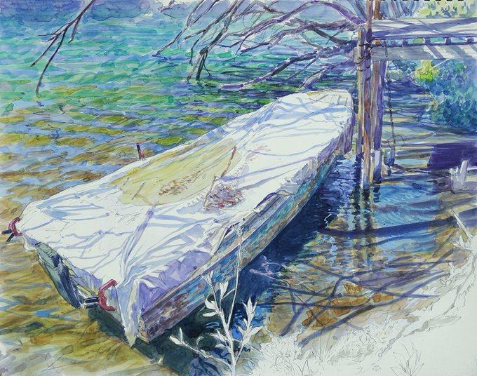 7 67 『廃船』『Abandoned ship』 f6 水彩絵の具 #水彩画 #Watercolor #スケッチ #風景画 21/02/07 12:00