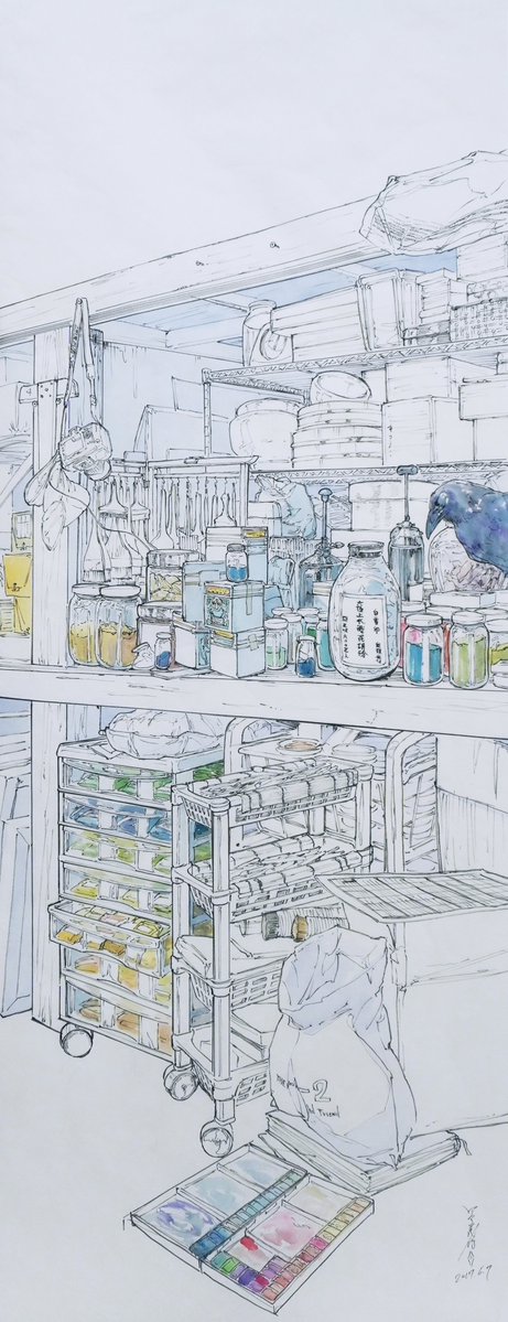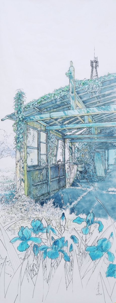 4 78 アトリエ四景01 H1770mm x W635mm 水彩絵の具 筆ペン 石州紙 #水彩画 #Watercolor #スケッチ #風景画 21/02/13 12:01
