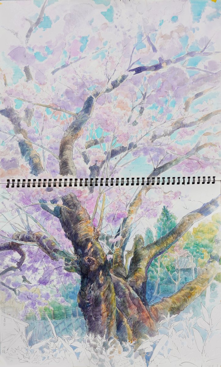 『老桜』『Cherry Blossoms』 f6×2 水彩絵の具 #水彩画 #Watercolor #スケッチ #風景画