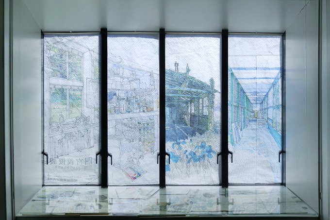 5 69 薄い紙なので透けます。 アトリエ四景01 H1770mm x W635mm x 4枚 水彩絵の具 筆ペン ロール石州紙 #水彩画 #Watercolor #スケッチ #風景画 21/02/15 11:59