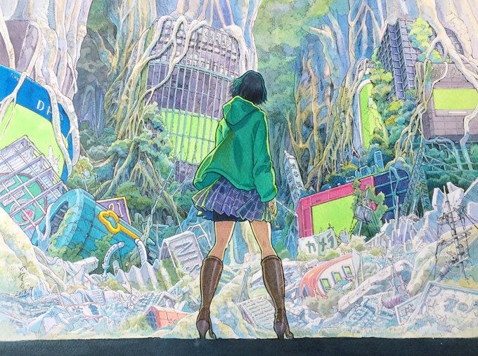 27 187 『トキノ交差』書き下ろし作品01 ミリペン カラーインク #水彩画 #Watercolor #スケッチ #風景画 21/02/17 12:00