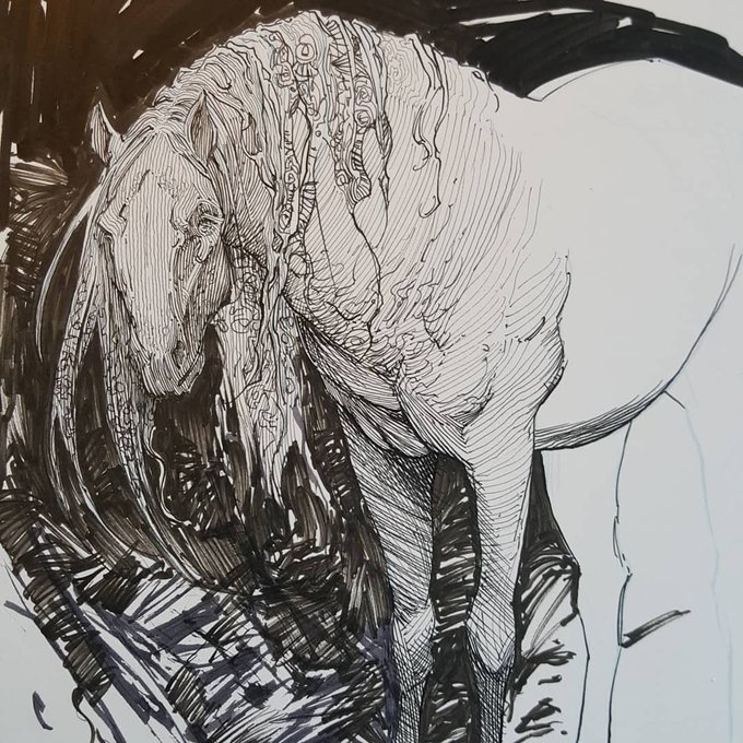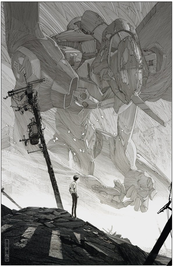 Golgotha, 11x17. I had a weird urge to pay homage to one of my most cherished animated influences. #evangelion #ink