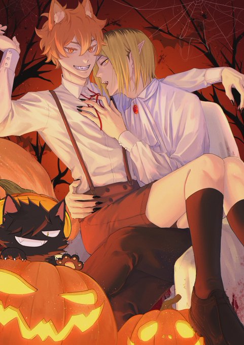 453 2049 🧛♂️🐺 Halloween~ 🎃👻 #研日 #kenhina #ハイキュー 22/10/30 01:46