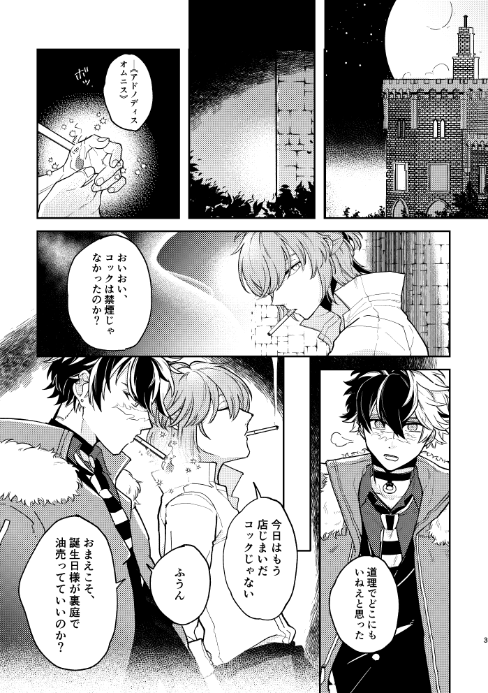 WEBオンリーお疲れ様でした&ありがとうございました!2021ブラッドリーBD漫画(4P)を再録します。【喫煙表現】及び【2021ブラッドリーBDカードのカドスト・カドエピの内容】を含みますのでご承知おきください。#そういうブラネロ4_アフター