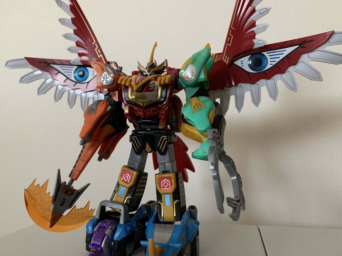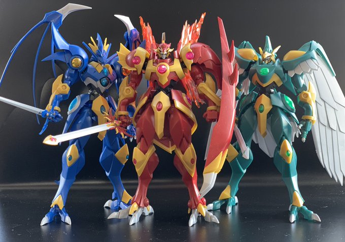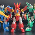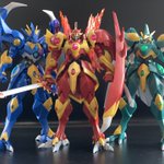 なんちゃってライジングタイタンにして肩をスプリング接続してみました。私の技術力では手の甲の紋章は無理…。 Nライジング三体とRマイティを並べられたので満足です。後は磐梯山が出してくれるのを待つのみ。 #造って遊ぼ #ニチアサフィギュア改造部 #SHFiguarts