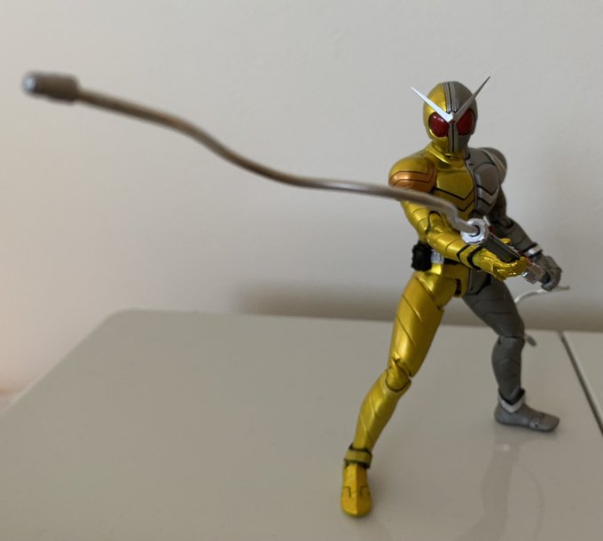 仮面ライダーWルナメタルの肩をスプリング接続しました。ついでにメタルシャフトを曲げられるパーツにしました。メタルイリュージョン好き!! 風都探偵はBS11待ちなのでまだ見れていませんがとても楽しみです! #ニチアサフィギュア改造部 #造って遊ぼ #仮面ライダーW