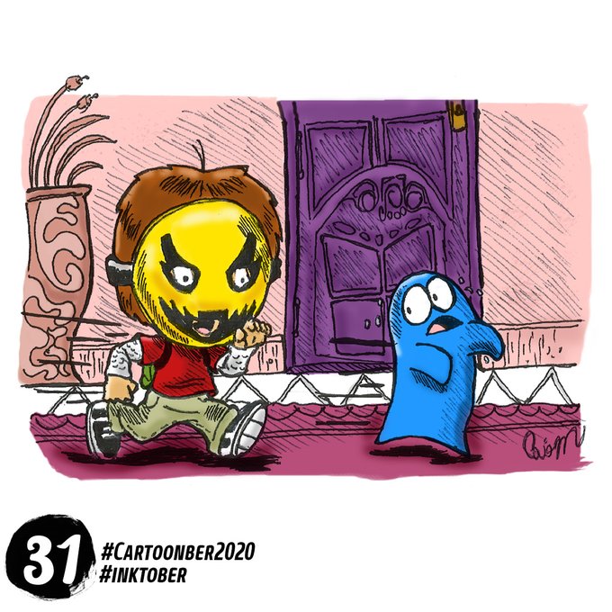 Enfim, o Ultimo desenho do Inktober 2020 - Dia 31: mansão foster para amigos imaginários (Mac com uma mascara do Pacman Malvado correndo atrás do Bloo) #Cartoonber2020 #Inktober #inktober2020 #inktober2020day31 #desenho #arte #CartoonNetwork #mansaofoster #mac #bloo #pacman