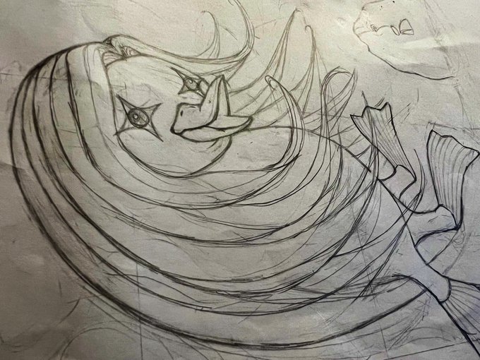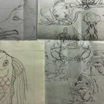 0 6 ラフ画✏️ リュウグウノツカイやオオサンショウウオ、ヒキガエル、金魚の妖怪など。 #イラスト 23/05/03 22:30