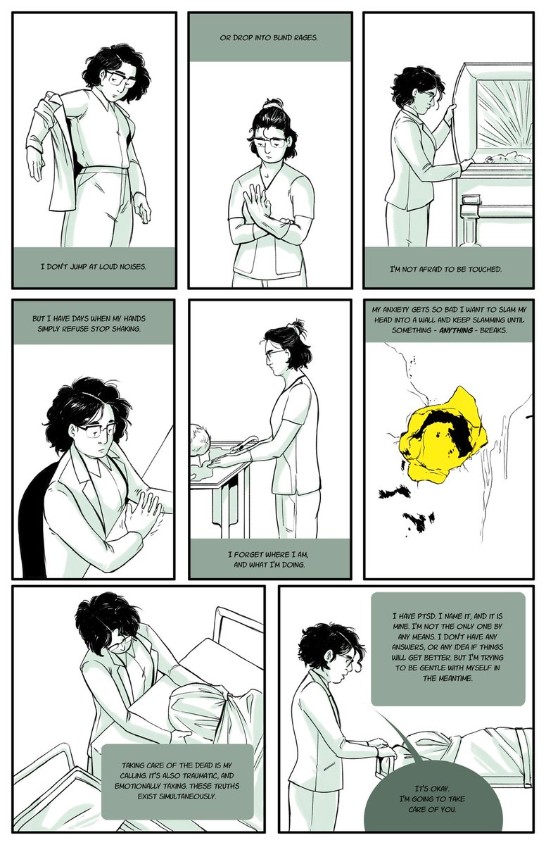 tw: ptsd A short comic about my struggles as a mortician coming to terms with PTSD #deathcare