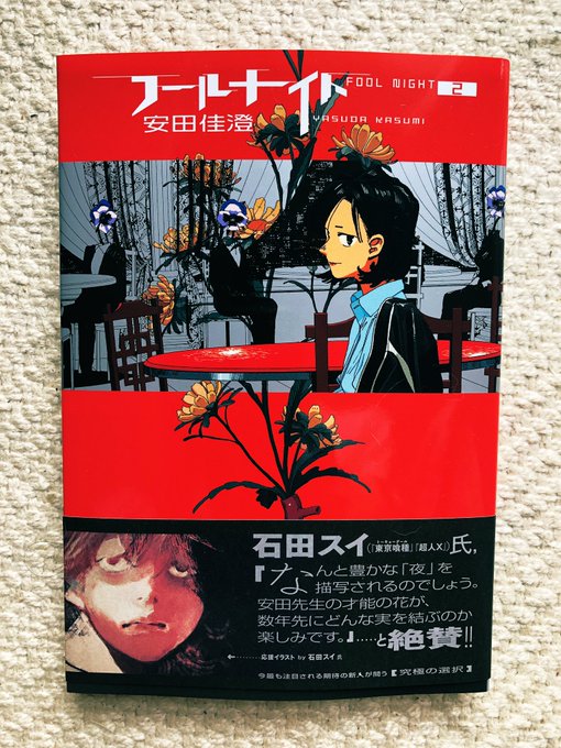 献本が届きました。赤いです。 そして石田スイ先生に帯コメント&イラストまで描いて頂きました。。。 フールナイト 2巻は明日8/30日発売です。 見かけたら本屋から救出してやって下さい。よろしくお願いします。 #フールナイト