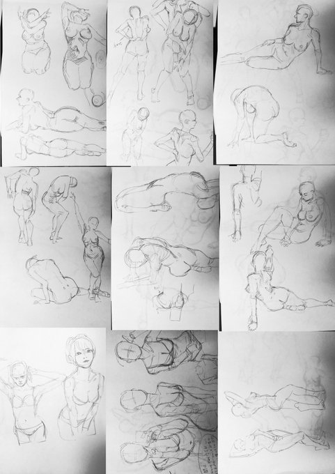 すいやせん…今日も時間無かったのでドローウィング(?)です… とにかくゆっくり描いて、体の動きと肉のつき方を覚えるようにしたいです… (クロッキーの動画を0.5倍速で見ている) #1日1絵