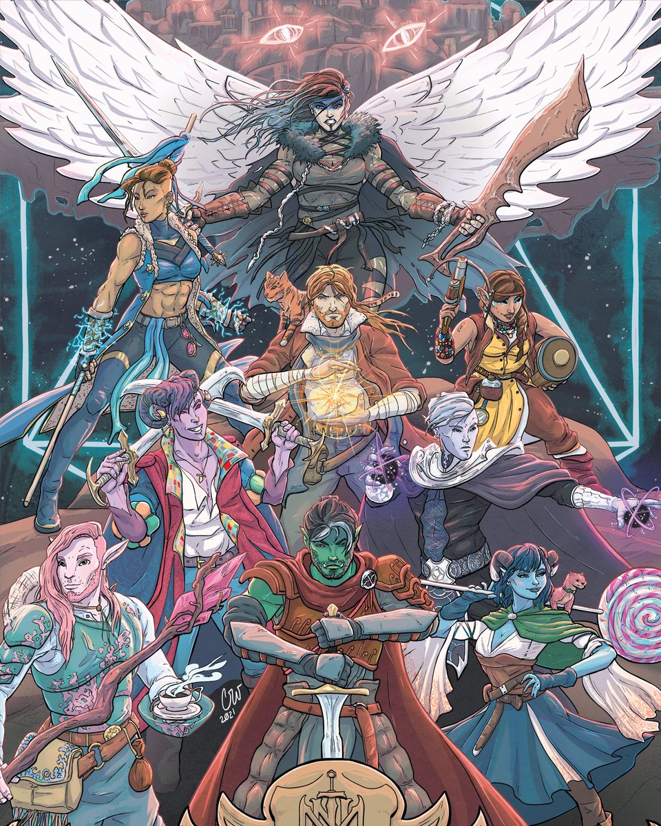 Long may they reign. At long last, I've completed this #MightyNein piece. It is a companion to the Vox Machina poster I drew earlier this year. @CriticalRole has become an all-time favorite of mine, so I knew I'd have to do this one eventually! #CriticalRole #CriticalRoleFanArt