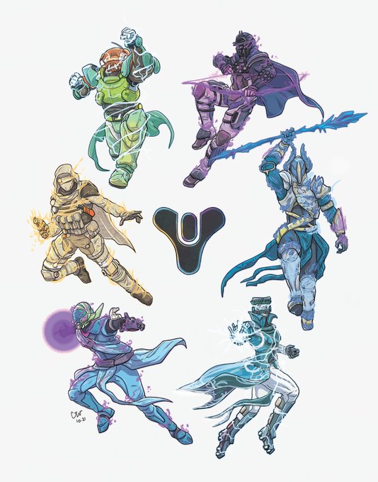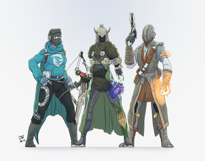 Guardians make their own fate. 🌌⚡️🧊🔥 A recently finished commission of a crew of guardians. Really loved this concept, and it was a pleasure to make. I hope you all enjoy as well! 🔥🧊⚡️🌌 #Destiny #Destiny2 #DestinyArt #Destiny2Art #art #drawing #videogames
