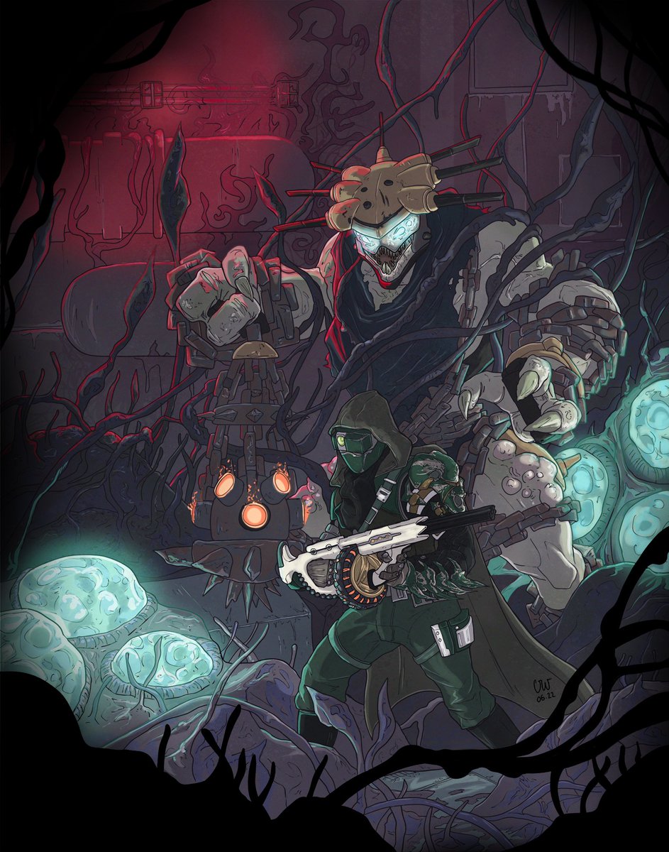 RETURN TO THE GLYKON. Spooky new commission. I was nervous trying to get this right, but I'm very happy and proud of the final product. Plus, Presage is one of my all-time favorite #Destiny activities. #DestinyArt #AOTW #DestinyArt @DirtyEffinHippy