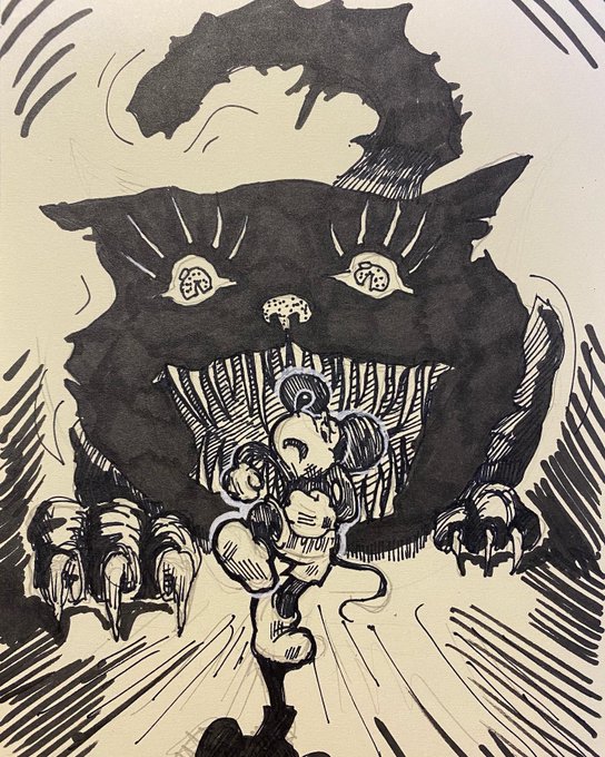 Всем фанатам миккимауса сори нот сори Наконец то я визуализировала картинку которая у меня возникала в мыслях когда я четвёртый час мучалась с ним на анимации пхххихихх)))) #sketch #inktober #traditionalart