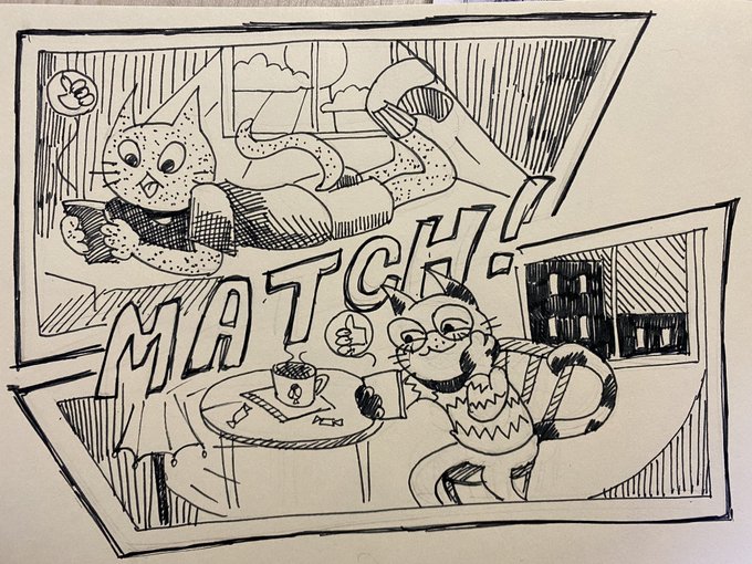 Киттис мэтч! #inktober2022day8 - match ! #inktober #inktober2022 #sketch #dailyart #traditionalart