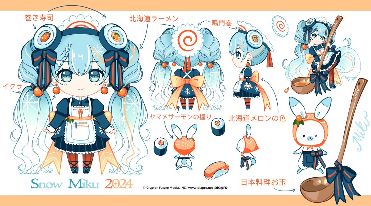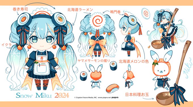 Snow Miku 2024🍜🍥🍣 I had a lot of fun designing her, and I’m very glad I finished her in time 😅 I hope you like her!! 🧡 piapro.jp/t/ELUn