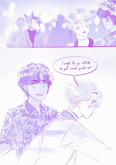 💧 Water+Blo0d🩸yoonmin AU/1° comic page. Yoongi and Jimin h4te each other since their first meeting. But one night at a university party, they have a good time together, laughing and drinking and end up the night in Yoongi's room.