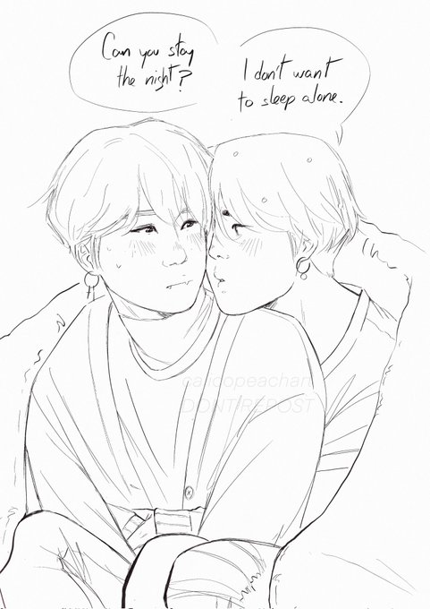 💧W+B🩸 yoonmin AU💜 sketch about Yoongi and Jimin start dating. Yoongi goes to Jimin's house to watch a terror movie and Jimin uses it as an excuse to ask him to stay the night👀