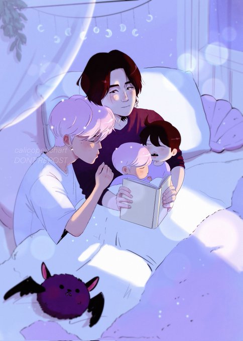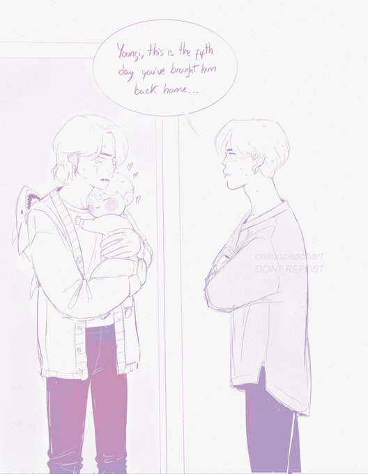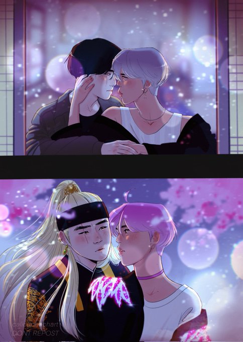 💝 February print for my patr0ns💝 W+B🦇yoonmin AU💖 I know it's a bit late for this😂 but I didn't have time before, still I hope you like it 🙏💖 They celebrate their first Valentine's as parents 🥰 that's why Yoongi has long hair.