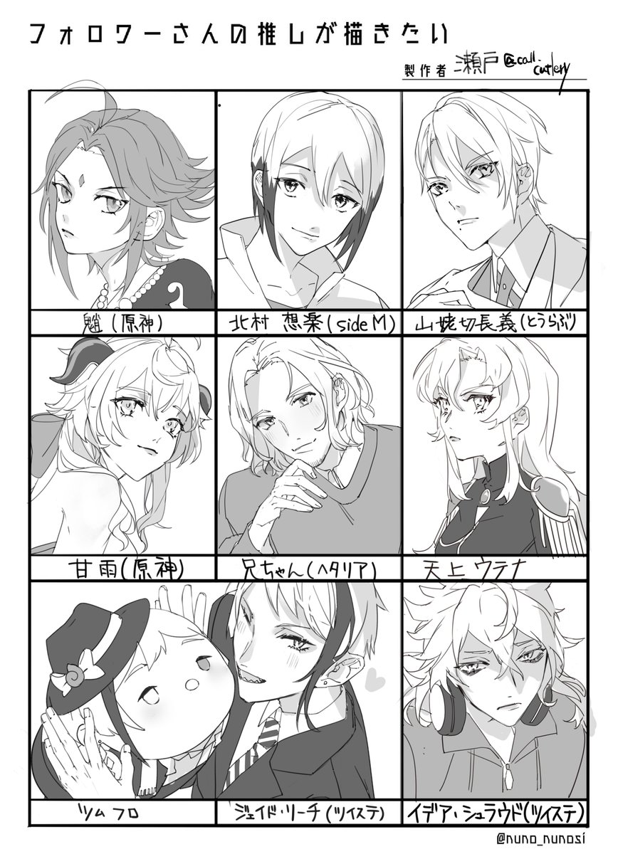 #フォロワーさんの推しが描きたい リプくださった方ありがとうございました! め~~~っちゃ楽しかった! お呼び出しはツリーにつなげます!