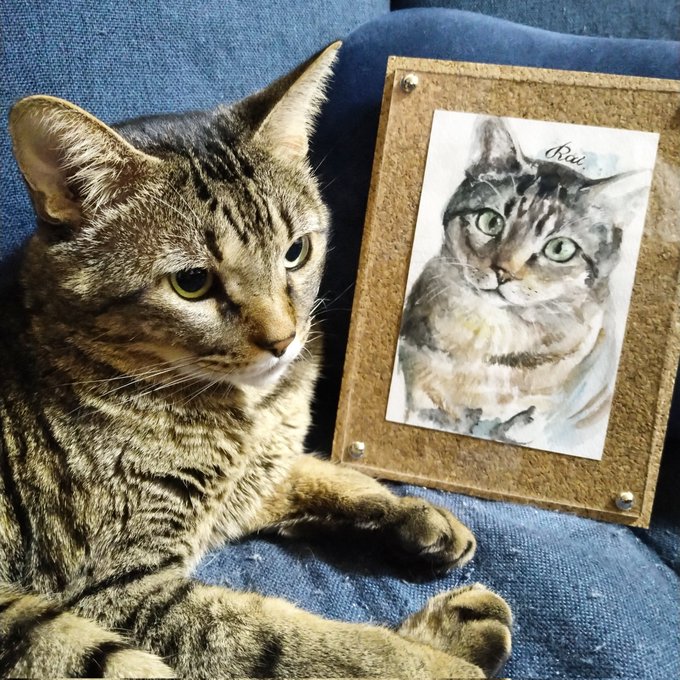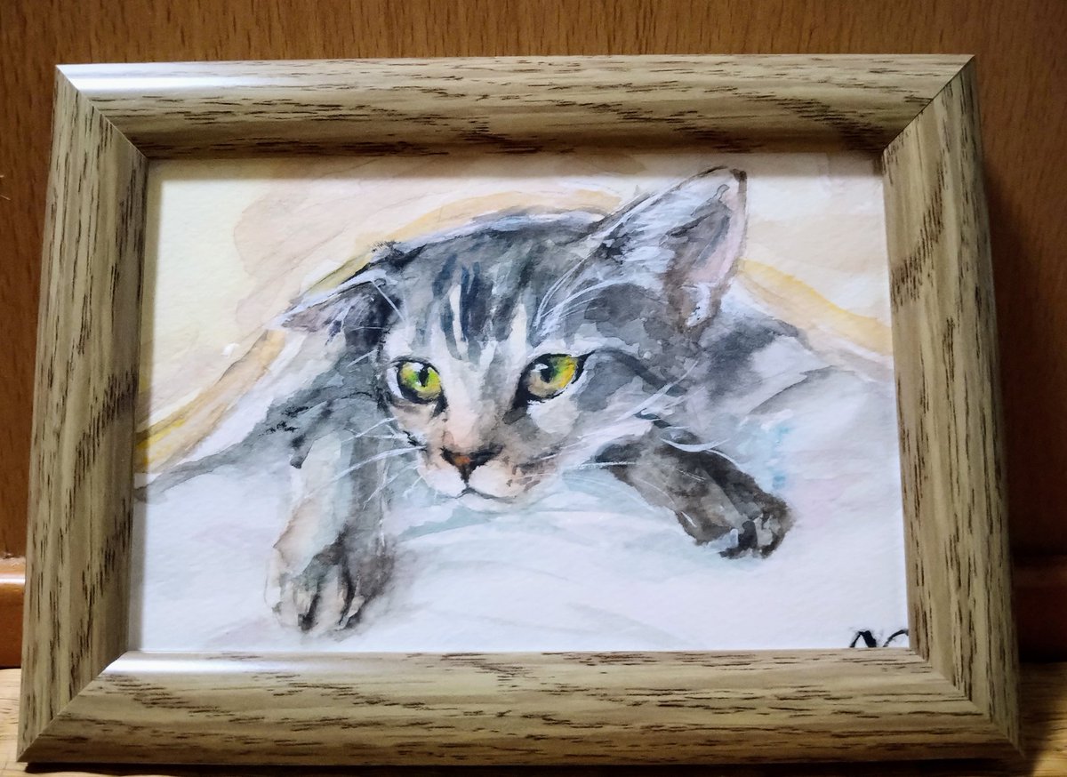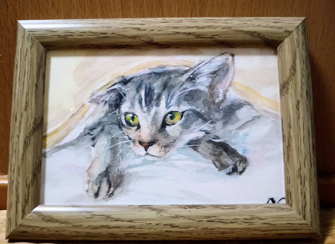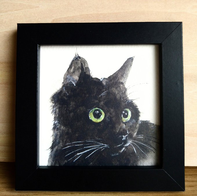 #猫好きさんと繋がりたい #猫 #ねこ #イラスト #イラスト好きな人と繋がりたい #絵描きさんと繫がりたい #水彩画 #水彩イラスト #黒猫 #可愛いと思ったらRT 額に入れるとこんな感じ