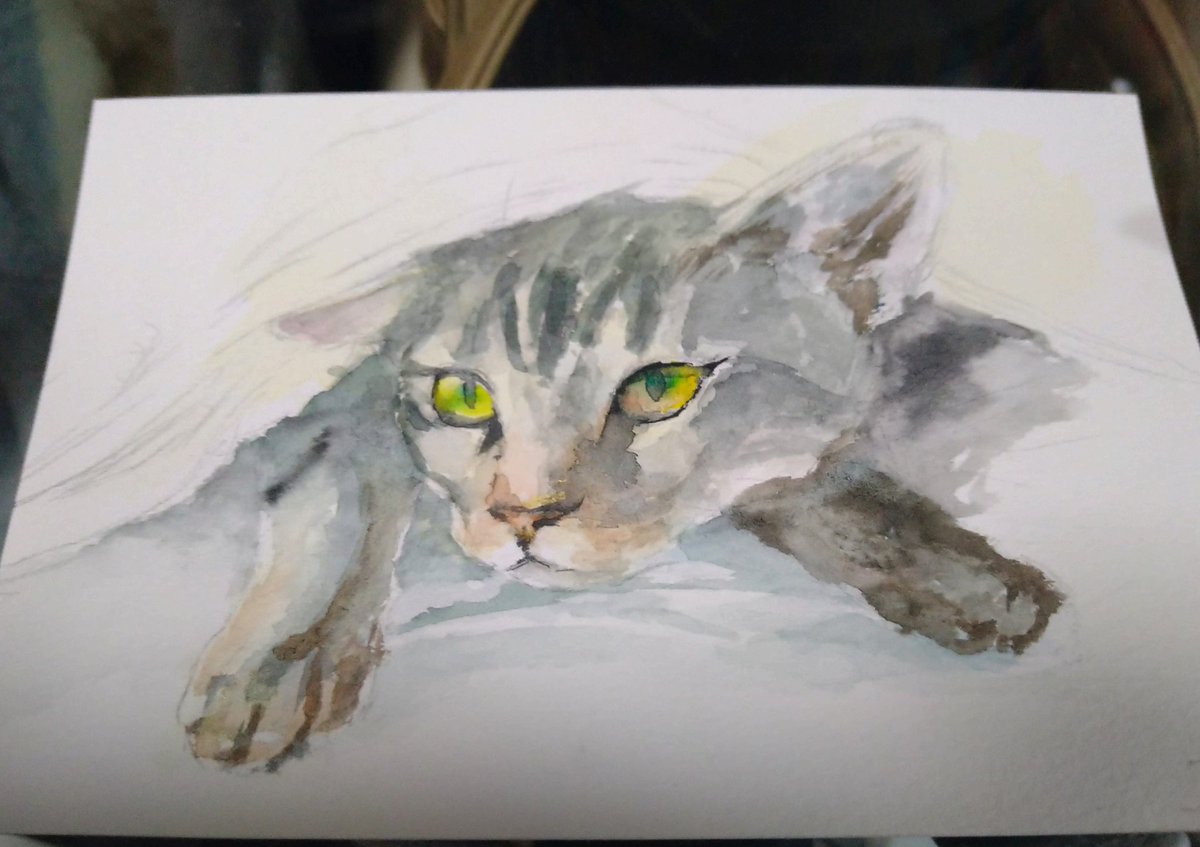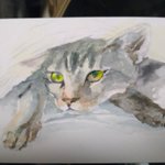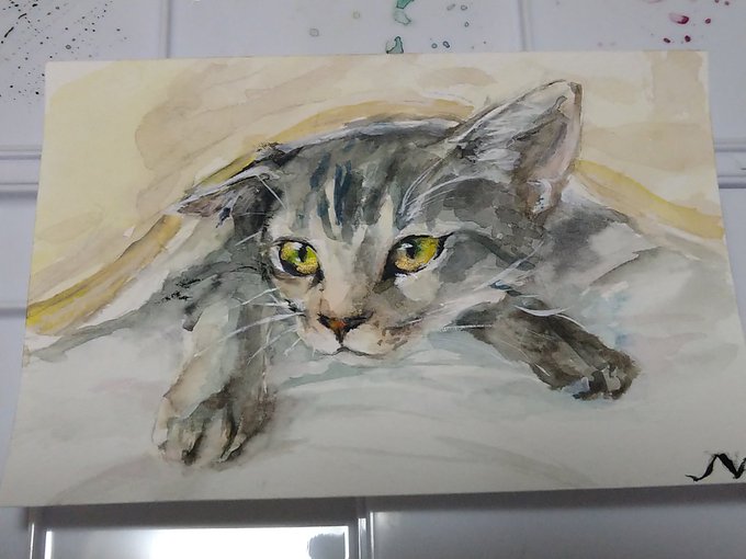 #猫好きさんと繋がりたい #猫 #ねこ #イラスト #イラスト好きな人と繋がりたい #絵描きさんと繫がりたい #水彩画 #水彩イラスト 完成しました! キラキラのゴールドを目や鼻にあしらってみました✨