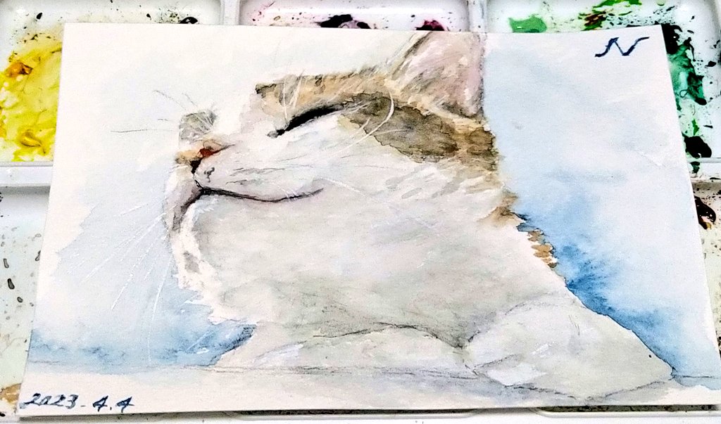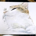 #猫好きさんと繋がりたい #猫 #ねこ #イラスト #イラスト好きな人と繋がりたい #絵描きさんと繫がりたい #水彩画 #水彩イラスト うちのちょっと抜けてる所があるれいくんです!冷蔵庫の上で寝てる姿を水彩で描いてみました!