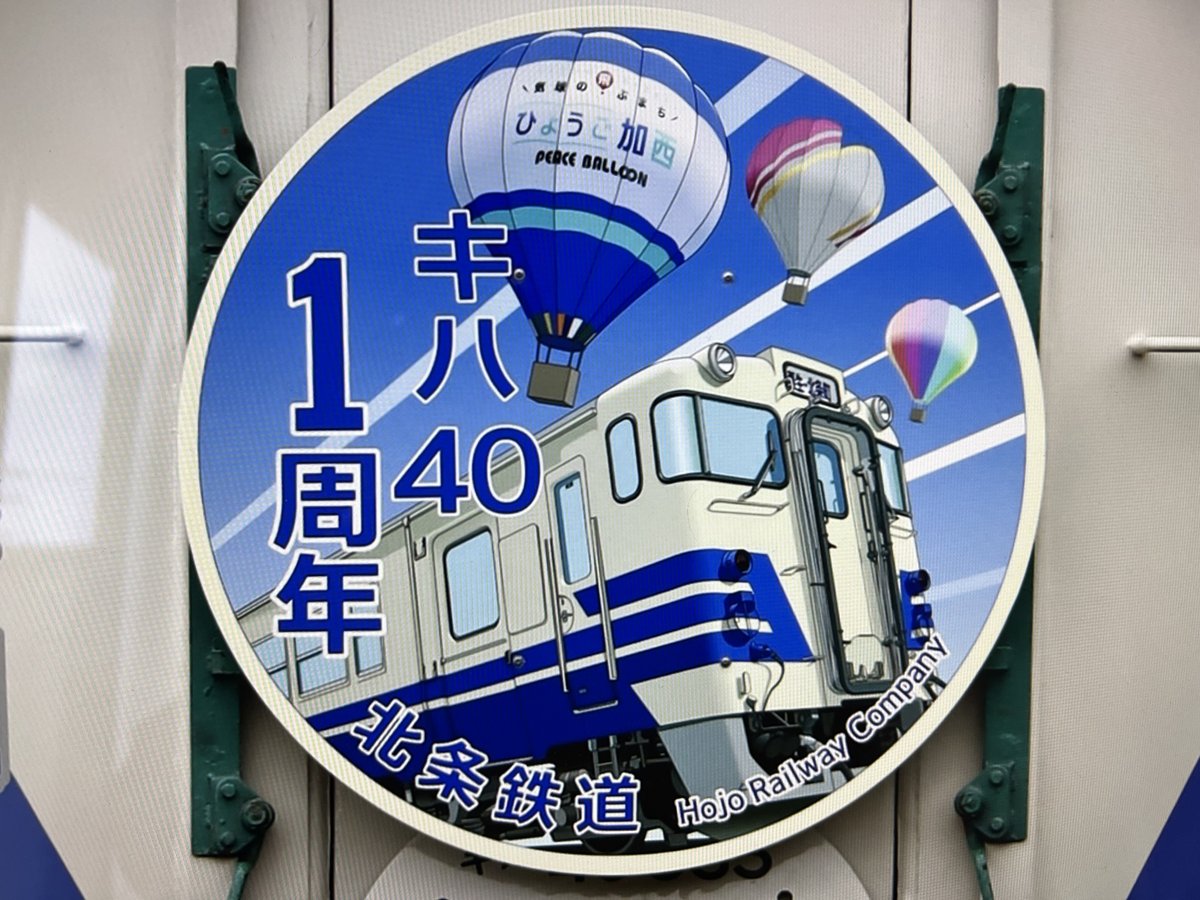 実は北条鉄道「キハ40 一周年ヘッドマーク」(加西側)をみなさんが撮影されてたのを見て、 「……真ん中の気球イラスト、中央上部が欠損してる?」 青空が食い込んでいますよね?