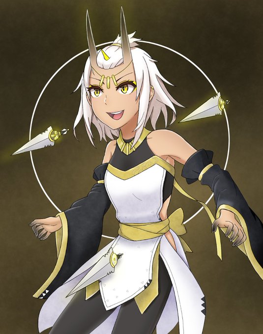 準備はできた?さあ、かかってこい!!! 🌩️⚡️🌩️ カシ'カ、スリーホーン侍祭 #イラスト好きな人とつながりたい #絵描きさんと繋がりたい #オリキャラ愛の創作クラスタさんと繋がりたい #ocart #イラスト #鬼娘