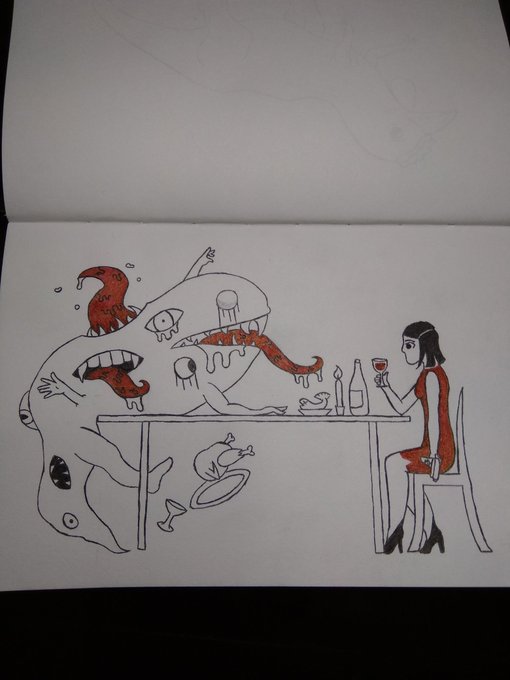 2 8 Day 6 feast with a monster #inktober #inktober2018 #drooling 18/10/07 10:36